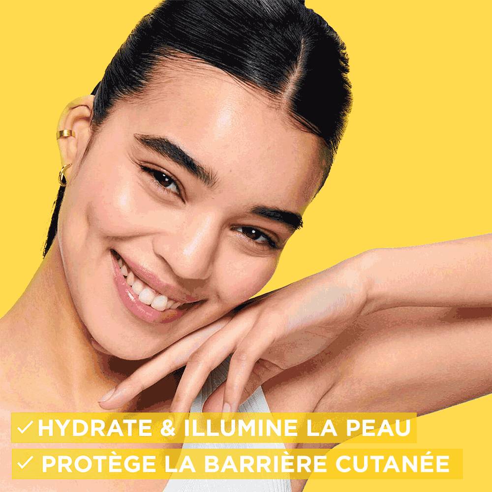 Le gel nettoyant Garnier booster d’éclat à la vitamine C nettoie, hydrate et illumine, pour une peau plus uniforme et plus lumineuse. Il élimine en douceur le maquillage et les impuretés, tout en préservant la barrière d’hydratation naturelle de la peau.