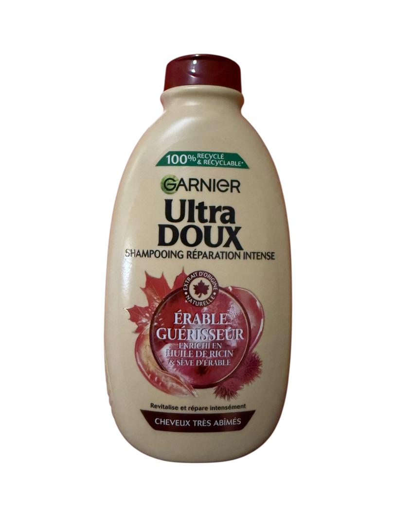 Véritable recette de soin pour les cheveux très abîmés, le shampooing Garnier Ultra Doux associe l’huile de ricin, particulièrement riche en acides gras et utilisée depuis des générations pour ses vertus revitalisantes et renforçatrices à la sève d’érable, vrai trésor de vitalité de l’arbre et reconnue pour ses vertus nutritives et réparatrices.